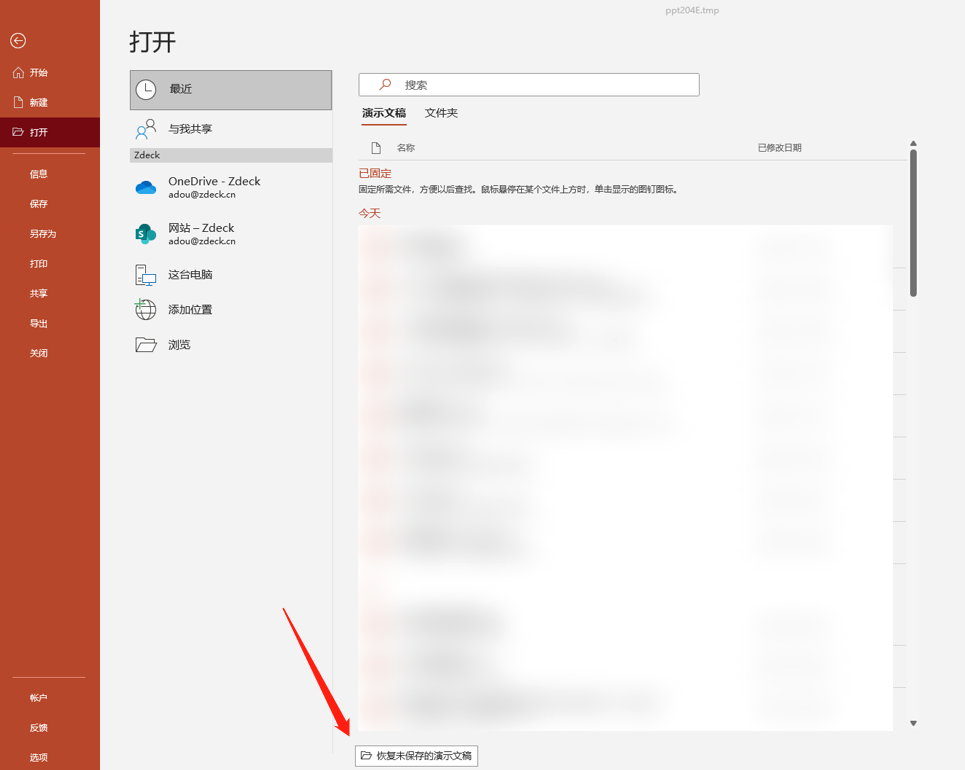 #1 文件-打开-最下方-恢复未保存的演示文稿