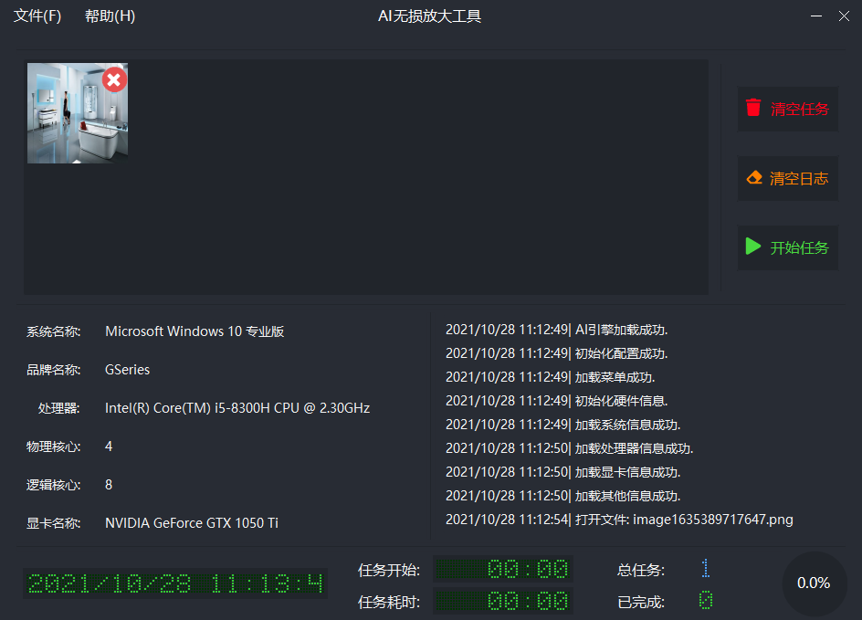 安装好后,将图片拖进去,点击开始任务,就可以自动处理了。